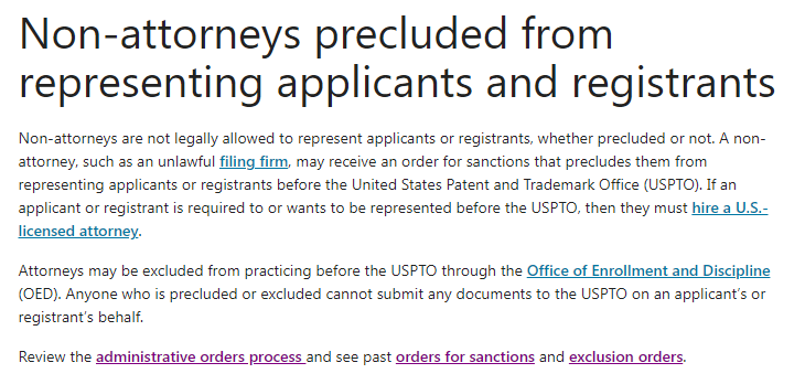 美国专利商标局 (USPTO)规定申请美国商标申请人或注册人必须聘请美国执照律师。