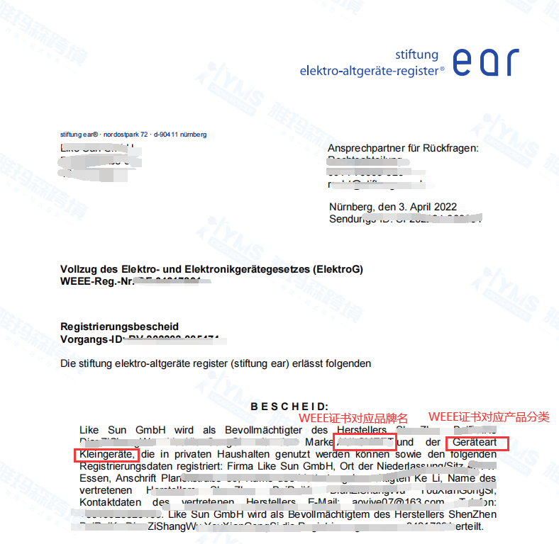 一、确认自己注册的WEEE证书对应的品牌与产品类型: