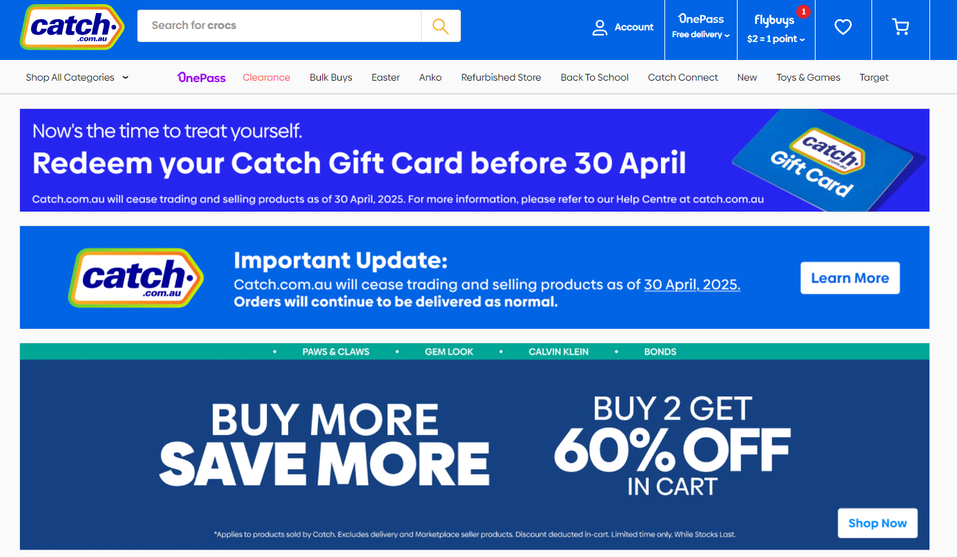 Catch.com.au于2017年推出,目前已是澳洲最大的每日线上交易量最大的平台。其前身是2006年成立的知名折扣网站catch of the day,吸引了很多知名品牌。在2016年,由于受到国际电商巨头Amazon,eBay等的冲击,改名为Catch,同时允许第三方卖家入驻。Catch现已拥有接近400位员工,45000平方米占地仓库,每天接收10,000笔以上订单。