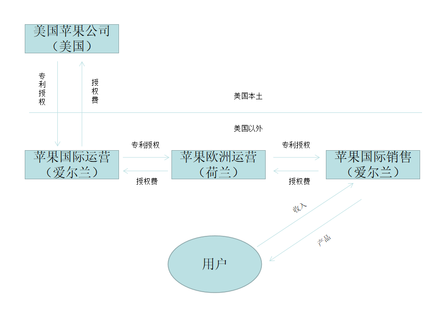 当“苹果国际销售”公司在销售苹果产品时,就需要向“苹果国际运营”公司支付知识产权使用费,因此“苹果国际销售”公司通过荷兰“苹果欧洲运营”公司的中转,把销售收入以知识产权使用费的名义转到“苹果国际运营”公司,最终转到总部加勒比群岛上。