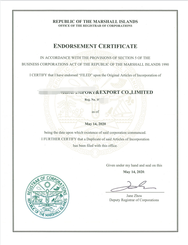 3、马绍尔公司拥有真正有效的中文名称,且正式归档,名字不会重复;