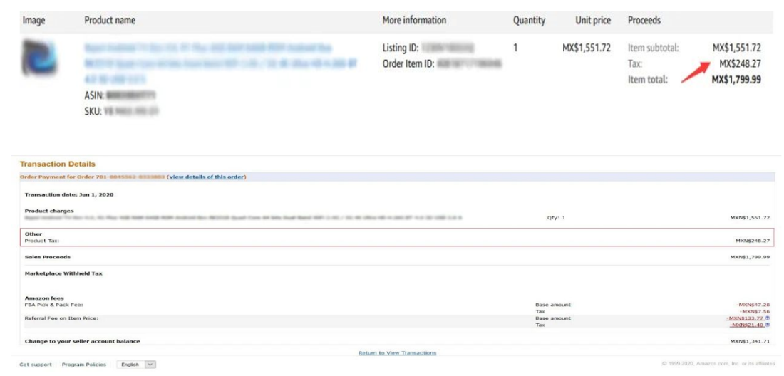 墨西哥RFC税收为企业所得税(ISR)为30%,产品增值税为16%;年度申报时间为每年1月到3月,申报缴纳上一财政年税款,月度申报需要在每月17日前完成上个月申报并缴纳临时或最终税款。而在亚马逊,如果卖家不能提供有效的墨西哥RFC,税金将由亚马逊代扣税为:16%的VAT&20%所得税。而16%是直接在订单划扣的,20%是在2020年6月25日统一划扣。如果有RFC(必须信息一致)收取的税会退回;如果没有RFC或者信息不一致,不退回。