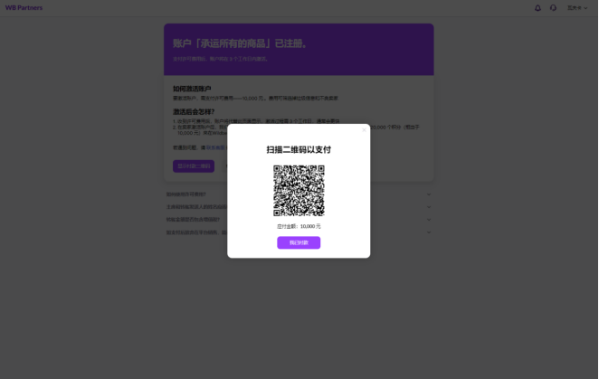 请用微信或支付宝扫描二维码支付10000元的保证金。