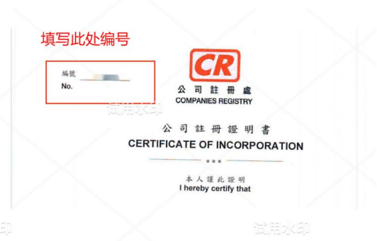如果您是香港或澳门主体,在填写公司统一社会信用代码时请注意应当填写注册证书编码,而非商业登记号码,即您应当填写如下公司注册证明书的编号, 而不是您的商业登记条例书里的登记证号码。请注意,如果填写错误将无法绑定回款通道。
