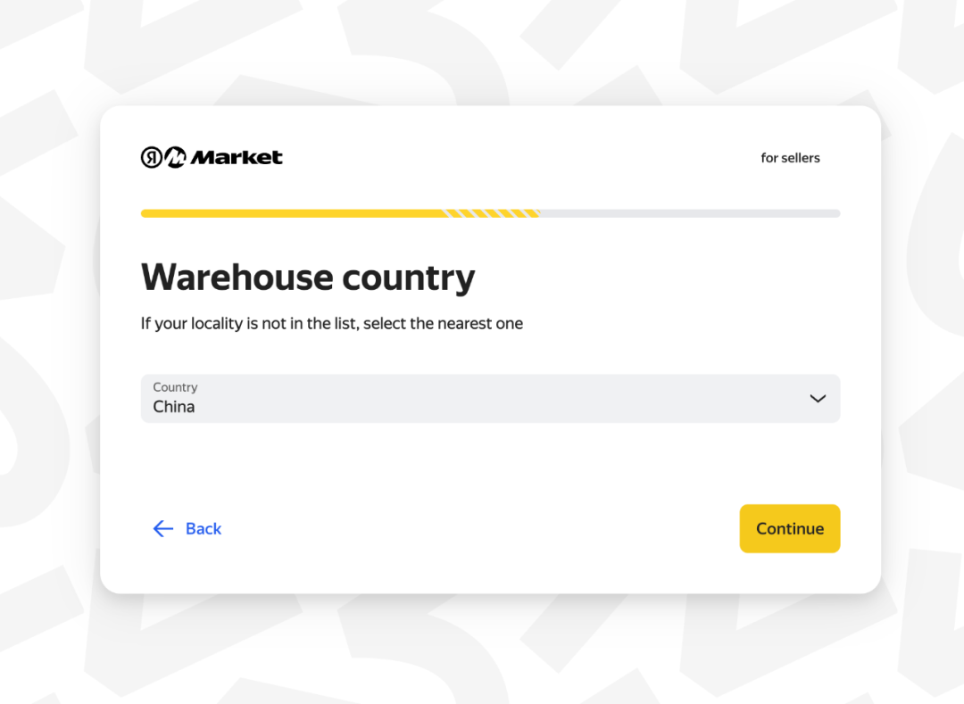 仓库国家,选择“China-中国”,俄罗斯仓库单独设置,点击“Continue-继续”