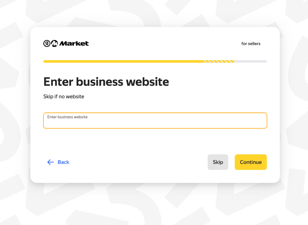 如果卖家有淘宝或者阿里店铺,请把网站链接填写上去,之后点击“Continue-继续”;如果没有,请点击“Skip-忽略”